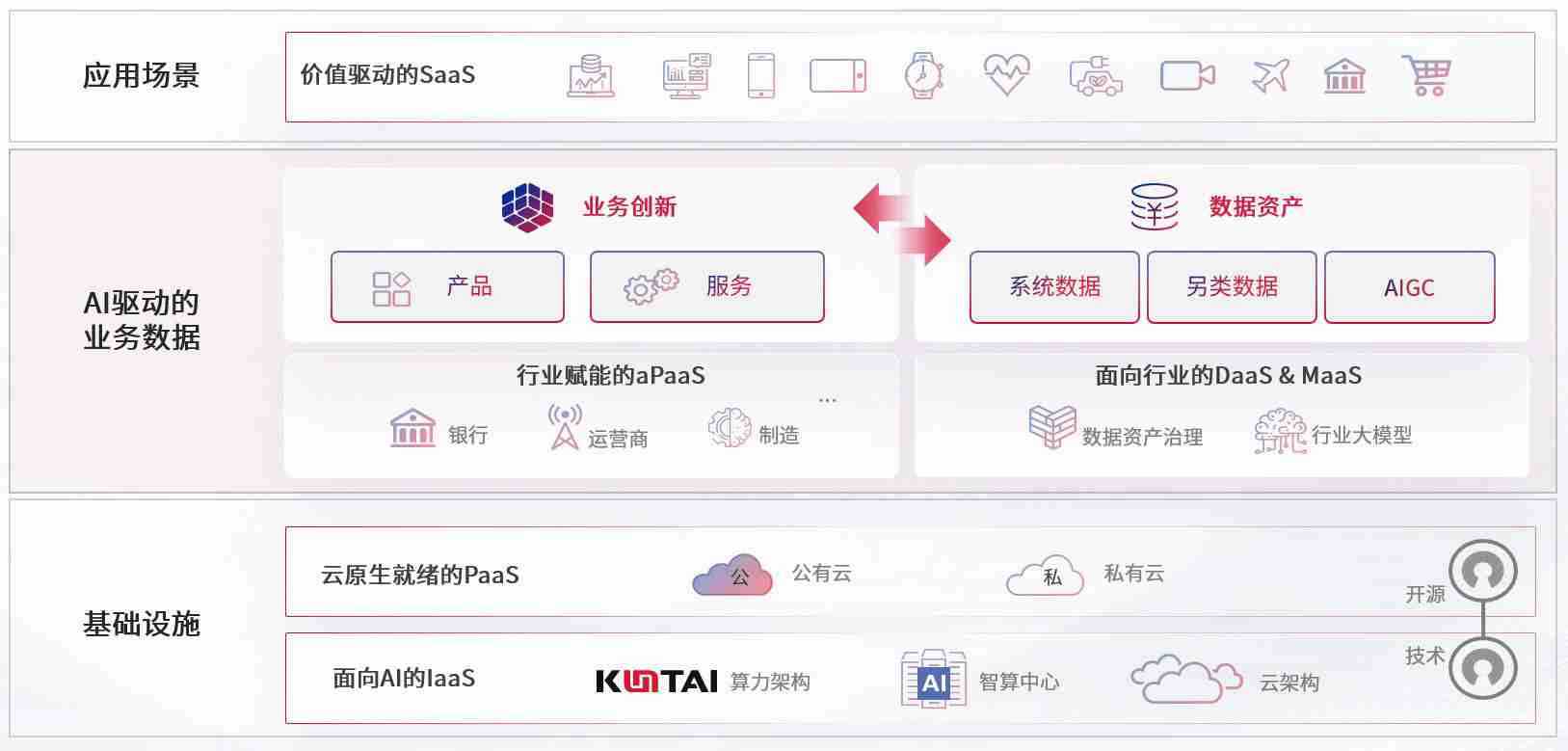 数字时代,,围绕企业数字化转型的关键要素,,365钱包数码开创性的提出数云融合战略和技术体系框架,,,着力在云原生、、、数字原生、、AI原生和信创产业上架构产品和服务能力,,,为处在不同数字化转型阶段的快消零售、、汽车、、、、金融、、医疗、、、、政企、、、教育、、运营商等行业客户提供泛在的敏捷IT能力和融合的数据驱动能力,,,,构建跨界融合创新的数字业务场景和新业务模式,,,,助力企业级客户建立面向未来的核心能力和竞争优势,,,全面推动社会的数字化、、智能化转型升级。。。。